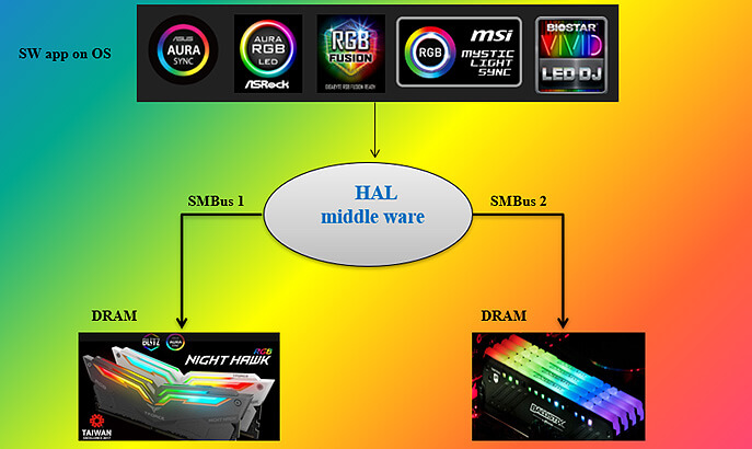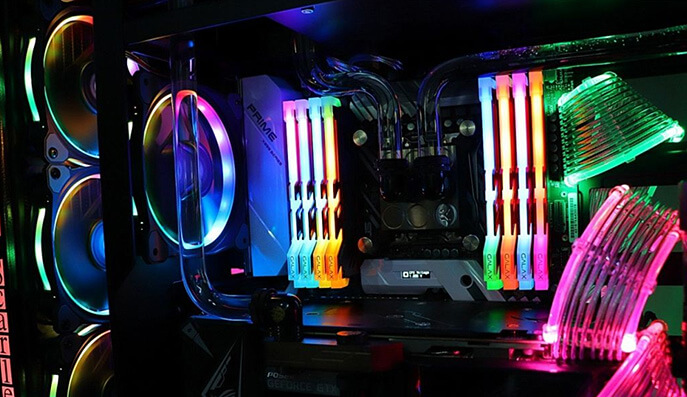 ENE ARGB/RGB控制IC, 不同以往RGB燈只能自行閃爍,可透過ENE MCU做到電競主機去控制週邊(包含主板、顯卡、DRAM內存條、PCIe卡、風扇、SSD固態硬盤…等等),讓你可自行設計閃爍特效程序,使整體更加流暢。